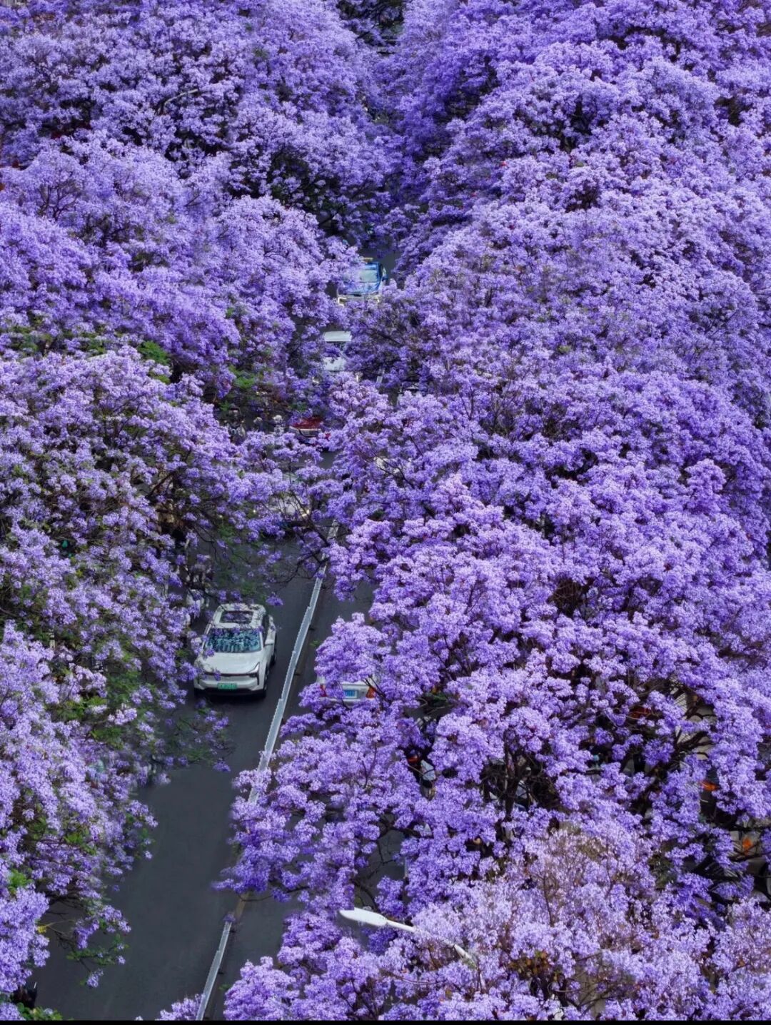 如果说樱花是3月的主角,那么4-5月的昆明,绝对是蓝花楹(Jacaranda)的主场,来一场四月限定的赏花Citywalk吧!